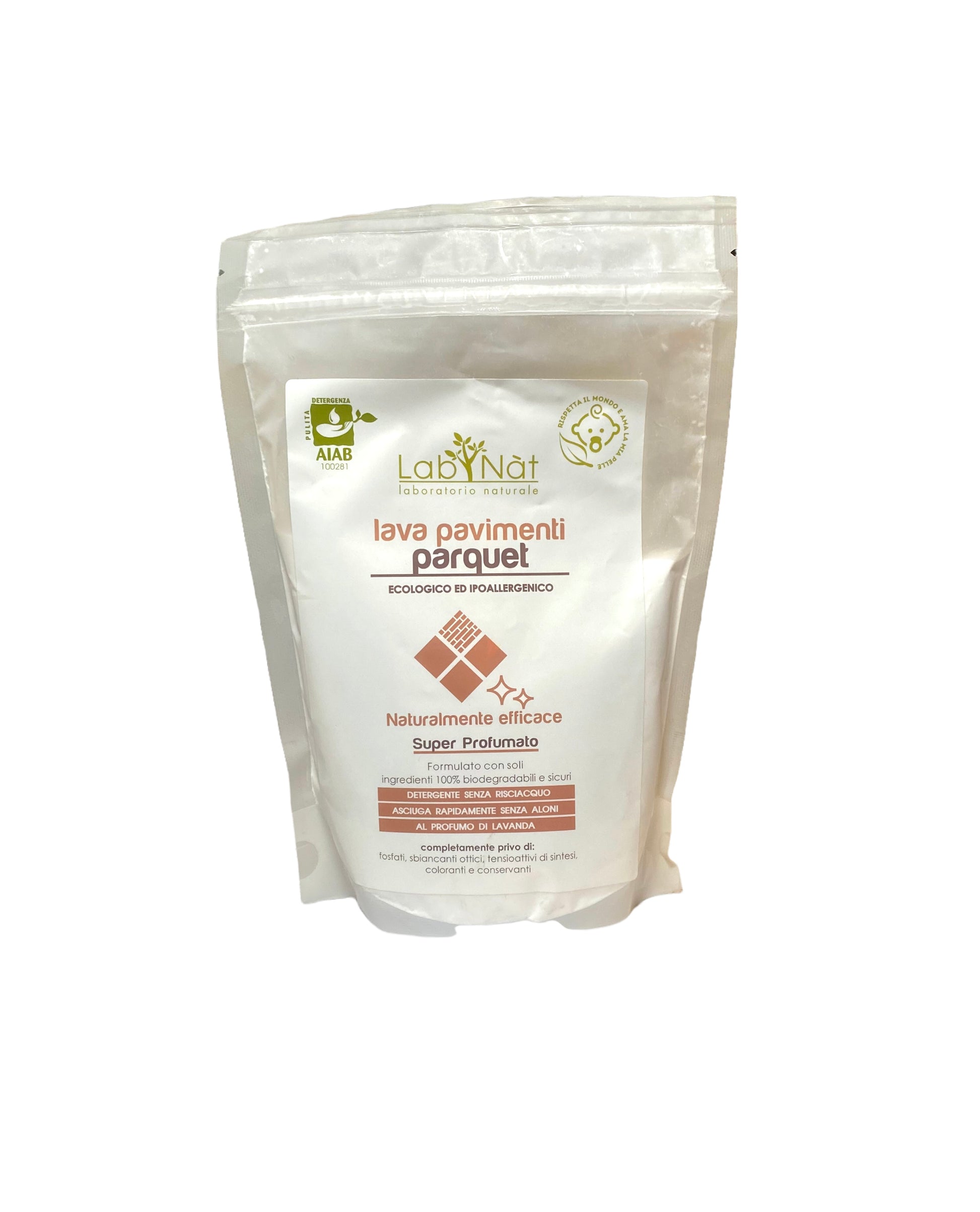 Lava pavimenti Parquet Lab Natù ecologico ed ipoallergenico, super profumato. Formulato con solo ingredienti naturali 100% biodegradabili e sicuri.